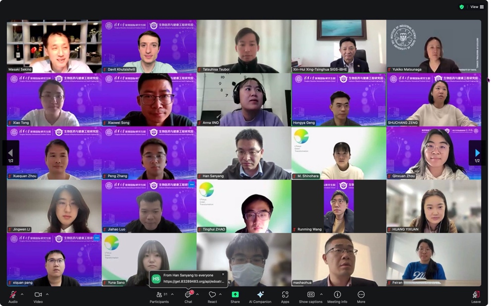 1月19日下午,清华大学深圳国际研究生院生物医药与健康工程研究院(iBHE)与东京大学生物工程系联合举办博士生在线研讨会。本次研讨会采取线上形式开展,围绕生命健康与生物技术工程领域的前沿研究进展展开深入交流。来自东京大学、iBHE的30余位师生参加了本次研讨会。